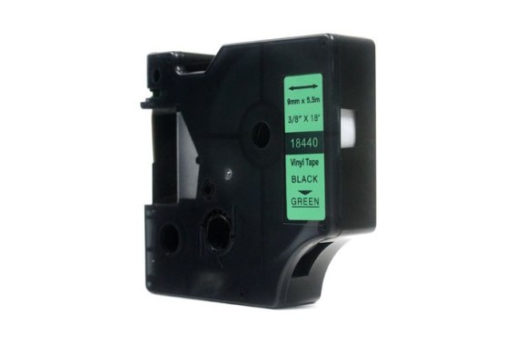 Taśma JetWorld Zamiennik Dymo Rhino Czarny na Zielonym 9mm x 5,5m Winylowa, Vinyl (18440)